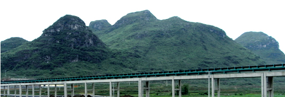 某水泥有限公司的長距離曲線皮帶系統(tǒng)主要為主廠區(qū)輸送破碎后的石灰礦石,設計輸送能力: 1800t/h;輸送線路總長:約6305m (包括直線、過渡弧段,未考慮地形凹凸的影響);帶寬:1200mm;帶速:3.6 m/s。該皮帶為頭尾72°單方向弧度長距離曲線皮帶,為亞洲之首。