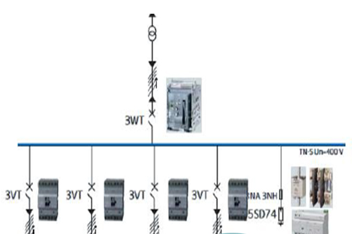 進(jìn)線電源設(shè)備主要包括:框架式斷路器(3WT系列與3WL系列),塑殼斷路器(3VL系列)。浪涌保護(hù)器(5SD74系列),多功能測(cè)量?jī)x表(PAC4200/3200/3100)