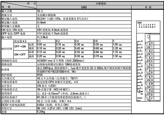 ◆ 產(chǎn)品型號(hào)◆ QI60 16點(diǎn),響應(yīng)時(shí)間:0.1/0.2/0.4/0.6/1ms◆ 技術(shù)參數(shù)
