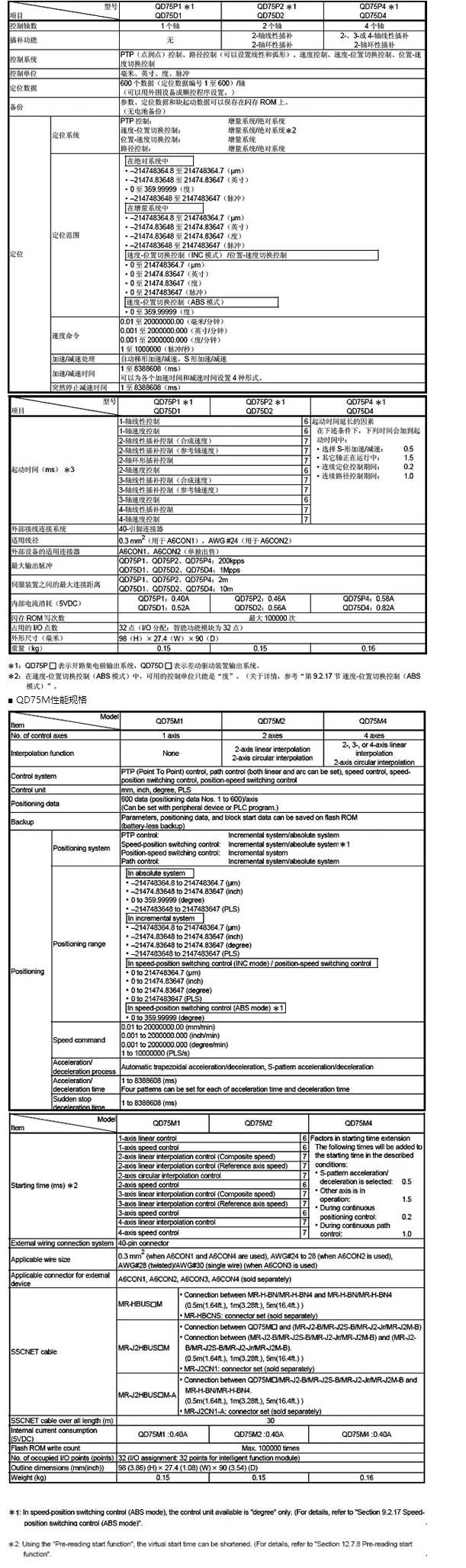 ■ QD75P/D系列性能規(guī)格